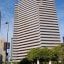 The building follows the classic tripartite form with a 3-story doric columned base, a 16-story tower, and a pyramidal top.